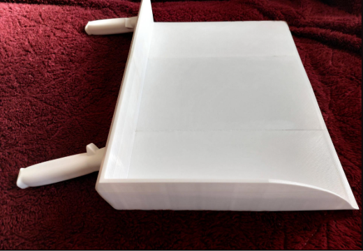 Das Problem war simpel, aber lästig: Die Edelstahlschaufel, mit der der Arbeiter die kiloweise Neapolitaner im Minutentakt auf einen anderen Tisch heben muss, ist schwer. Die theoretische Entwicklung dauerte fünf Arbeitsstunden, und der Druck stellte eine echte Herausforderung dar. Das Produkt wurde aus einem Material mit Lebensmittelzulassung gefertigt. Aufgrund seiner Größe musste es aus mehreren Teilen bestehen, die anschließend verklebt, verbunden und geschliffen wurden. Das Ergebnis war im Vergleich zum Original so leicht (nur ein Drittel des Gewichts), dass es dem Arbeiter fast aus der Hand fiel. Ich habe den Griff auch etwas angepasst, damit er besser in der Hand liegt und einen besseren Winkel hat.