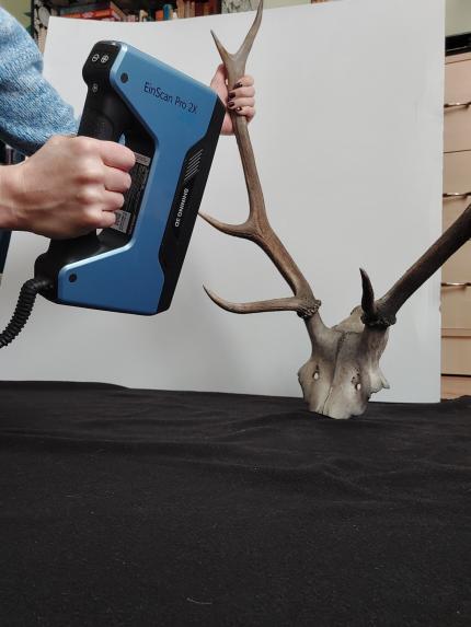 Ha egy projekthez térbeli digitalizálásra van szüksége, és szeretné önállóan, költséghatékonyan megoldani, forduljon hozzám! A rendelkezésre álló eszköz egy profi, nagy felbontású, kompakt, könnyen szállítható, felhasználóbarát kézi szkenner. Beolvasható vele nagyobb méretű tárgy is: pl. autó vagy annak részlete. Komplett épület szkennelésére nem alkalmas, de épületdísz leképezéséhez megfelelő. Alsó mérethatár kb. egy gyufásdoboznyi; ez alatt elvesznek a részletek.
