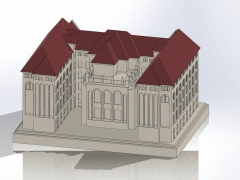 A Pecz Samu által tervezett épület rengeteg apró részletet, díszítést tartalmaz, tele van hosszúkás ablakokkal, beugrókkal, tornyocskákkal. A szem belesajdul, mire képes befogadni ezt a sok információt. Célom az volt, hogy minél több részletet megőrizzek és bemutassak a kis maketten, amely még ésszerű áron nyomtatható, így a látogatók hazavihetnek egy kis darabot ebből a csodából.