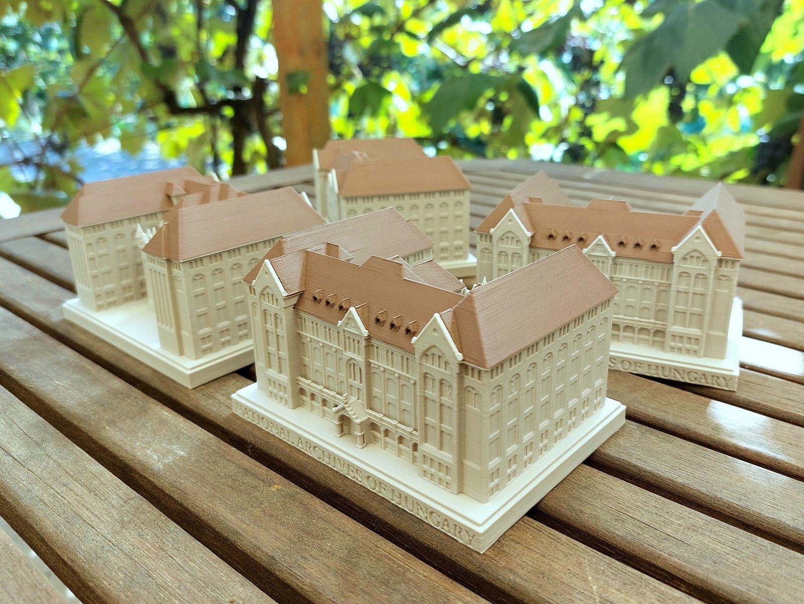 A tervezés közel 18 órát vett igénybe, a modell teljes egészében fotók alapján készült. Négyféle méretben került kinyomtatásra próbaképpen; a három nagyobból elkészült egy kis sorozat. A nyomtatás két szín egyidejű használatával, PLA anyagból, 0,4 mm-es fúvókával történt. A termékek megvásárolhatók a Magyar Nemzeti Levéltár Bécsikapu téri ajándékboltjában.