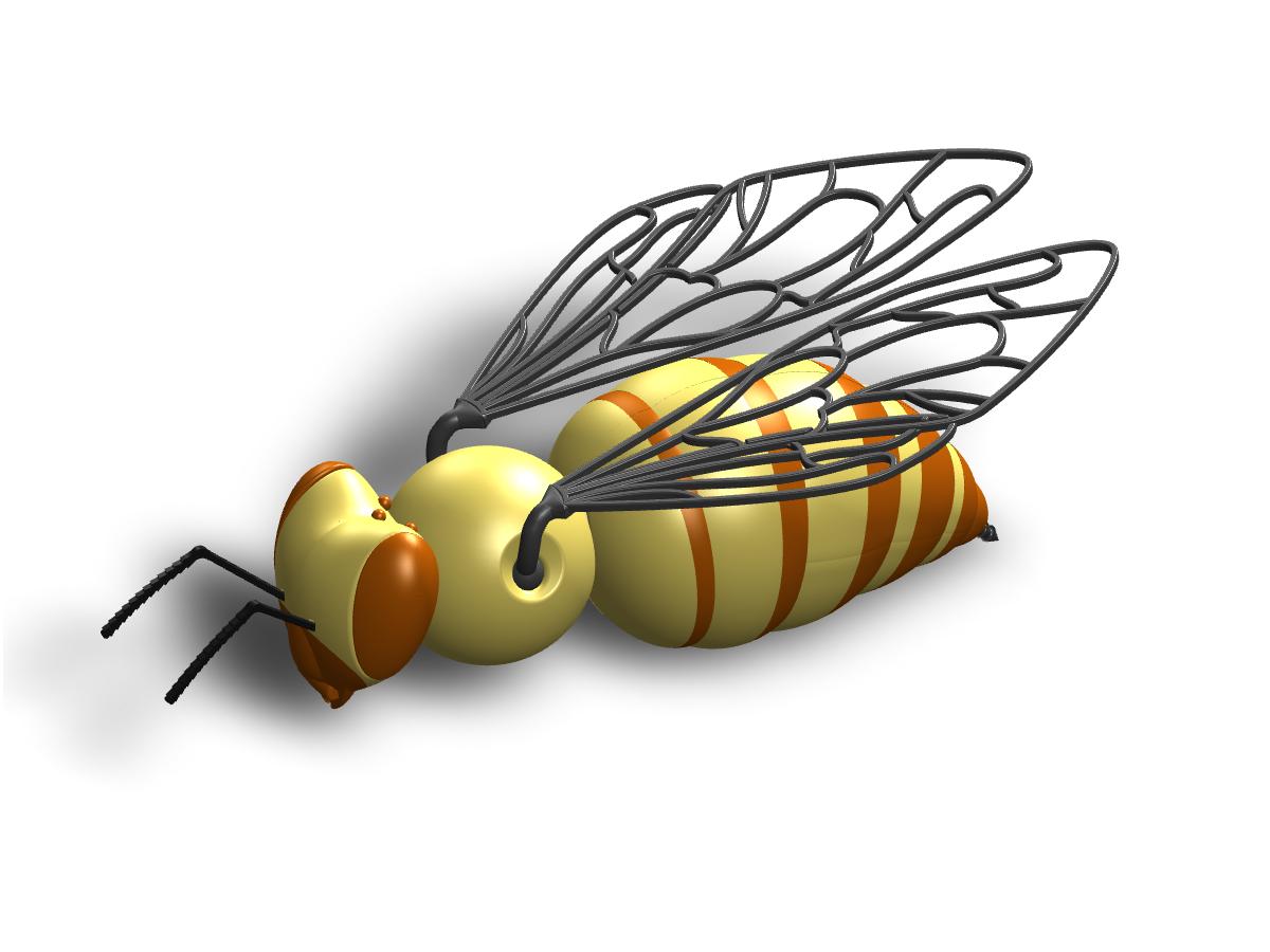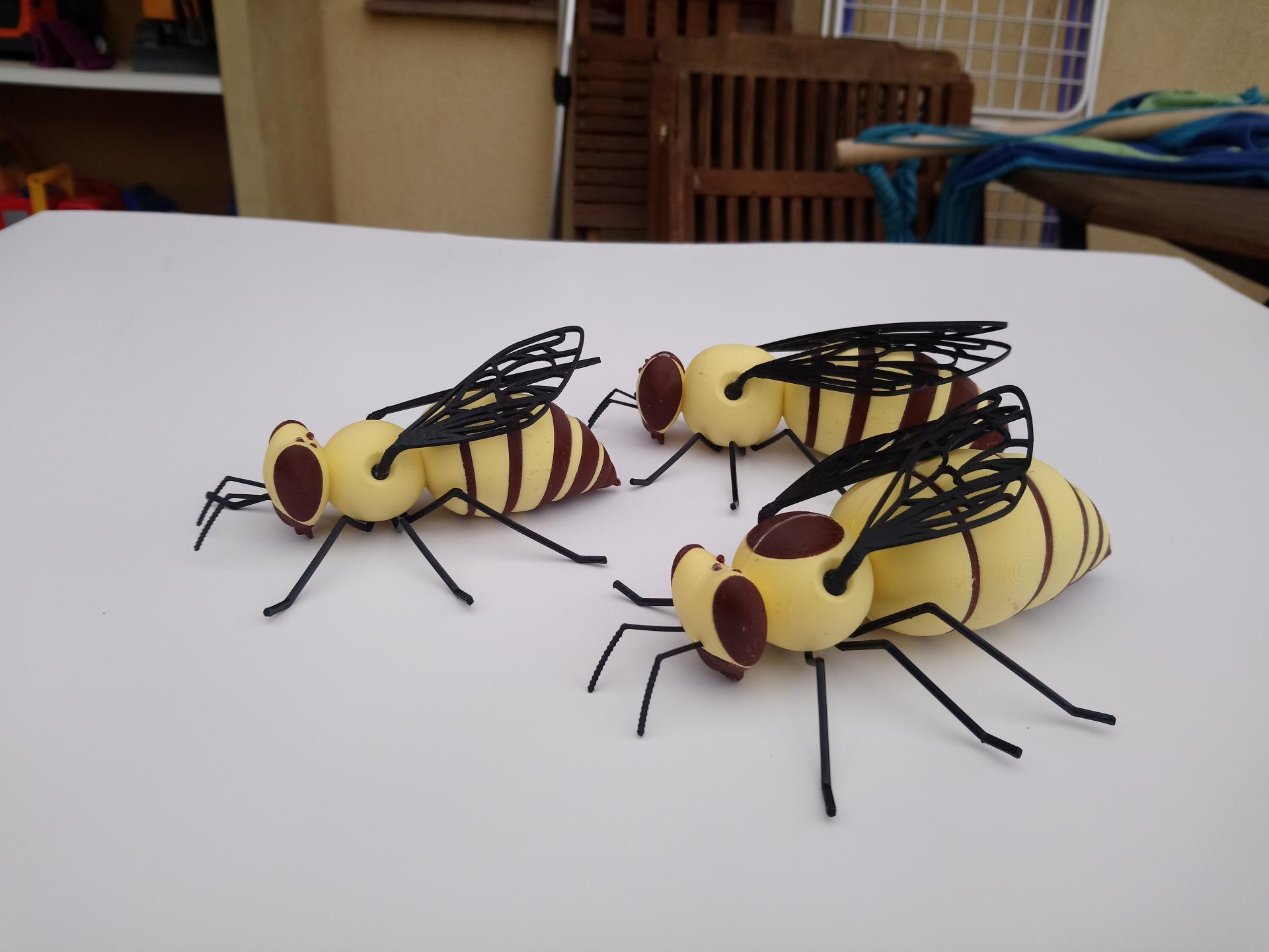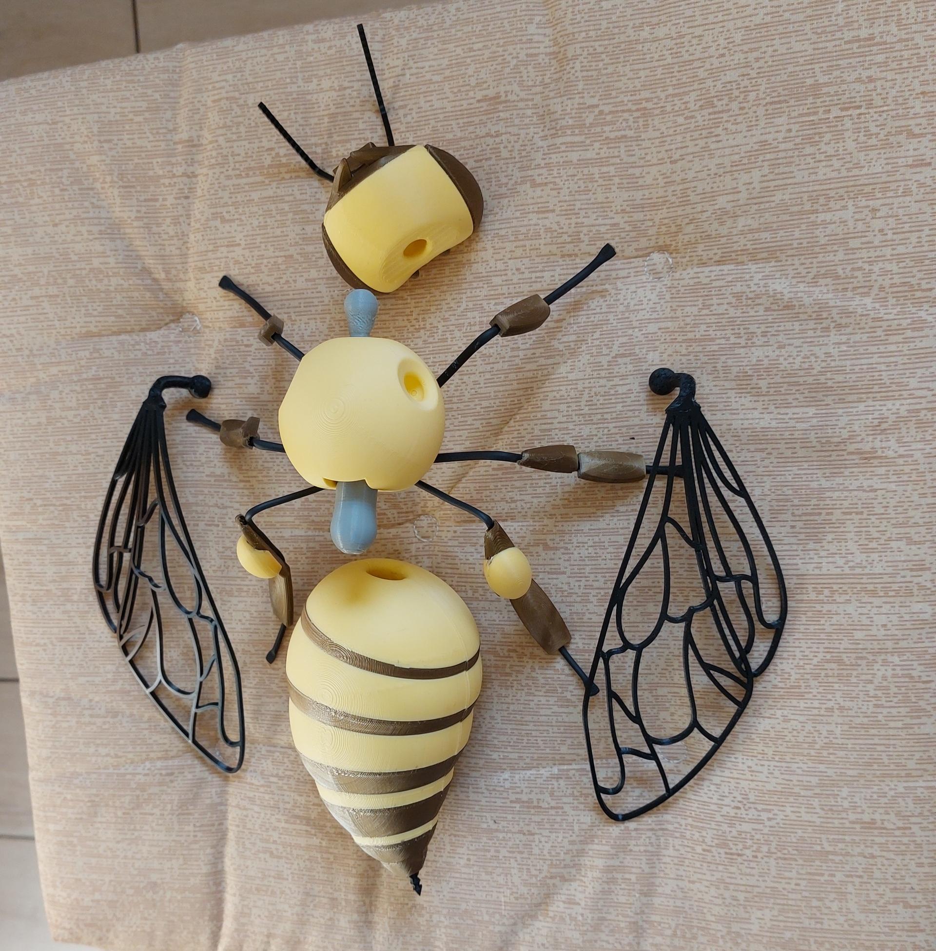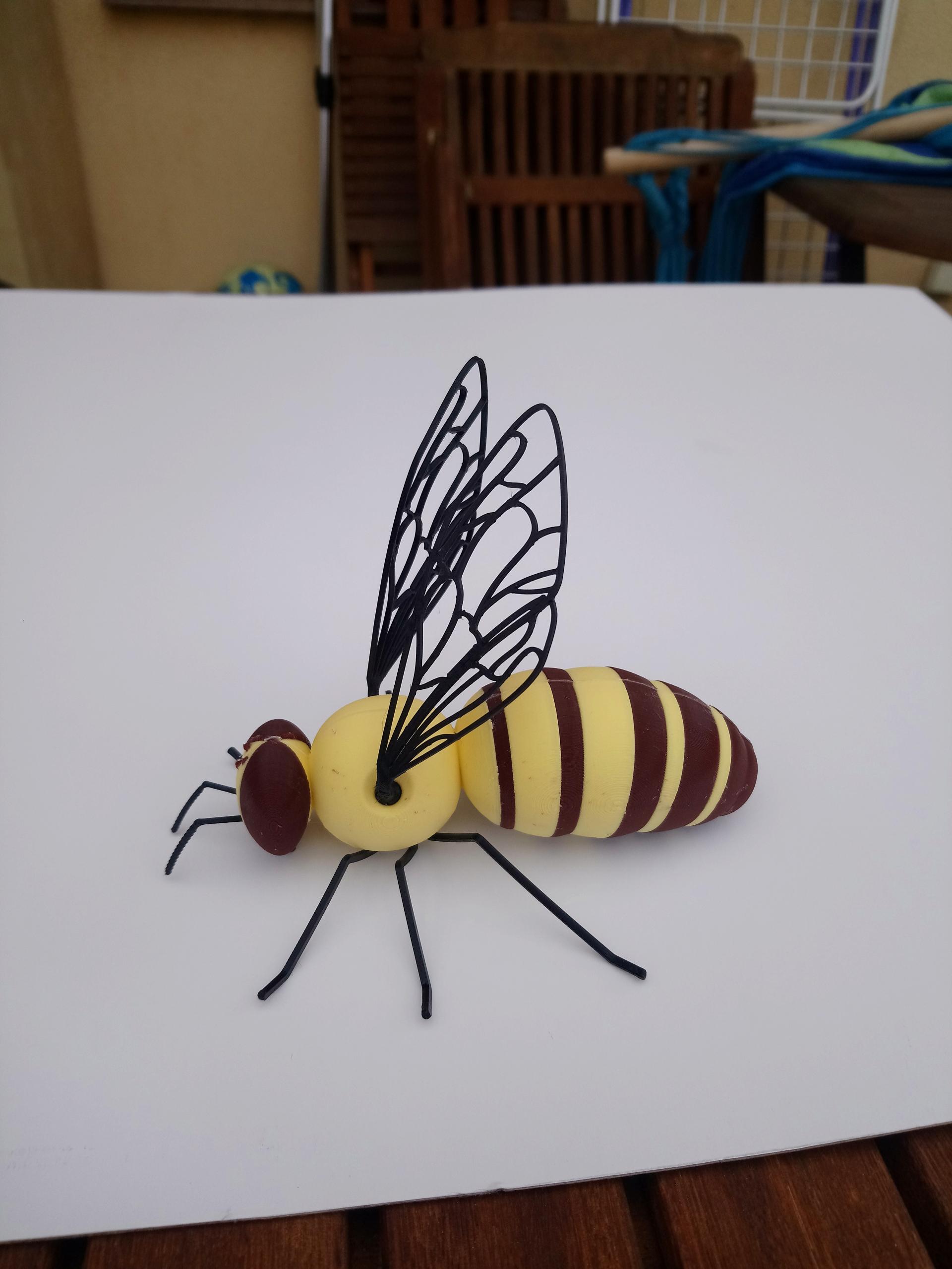 Anyagok: PLA (fej, tor, potroh, kosárka, ízek a lábakon) + TPU (szárnyak, csápok) + saválló drót zsugorcsővel és PLA elemekkel (lábak)