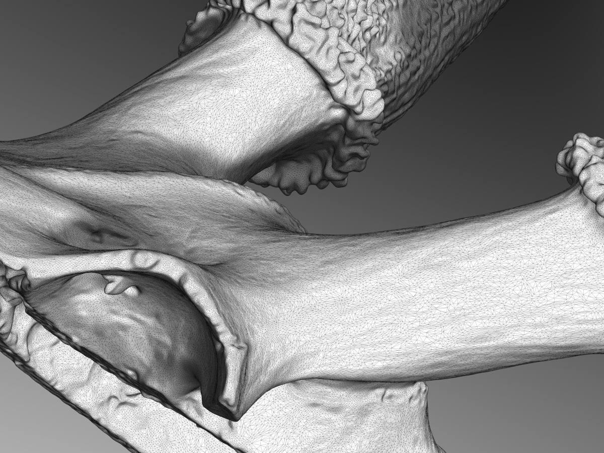 A szkennelési folyamat 3 órát vett igénybe. Az eredmény rendkívül részletes lett: 1.709.442 db háromszög határolja a kész modellt. Befoglaló méretei: 529 x 542 x 480 mm