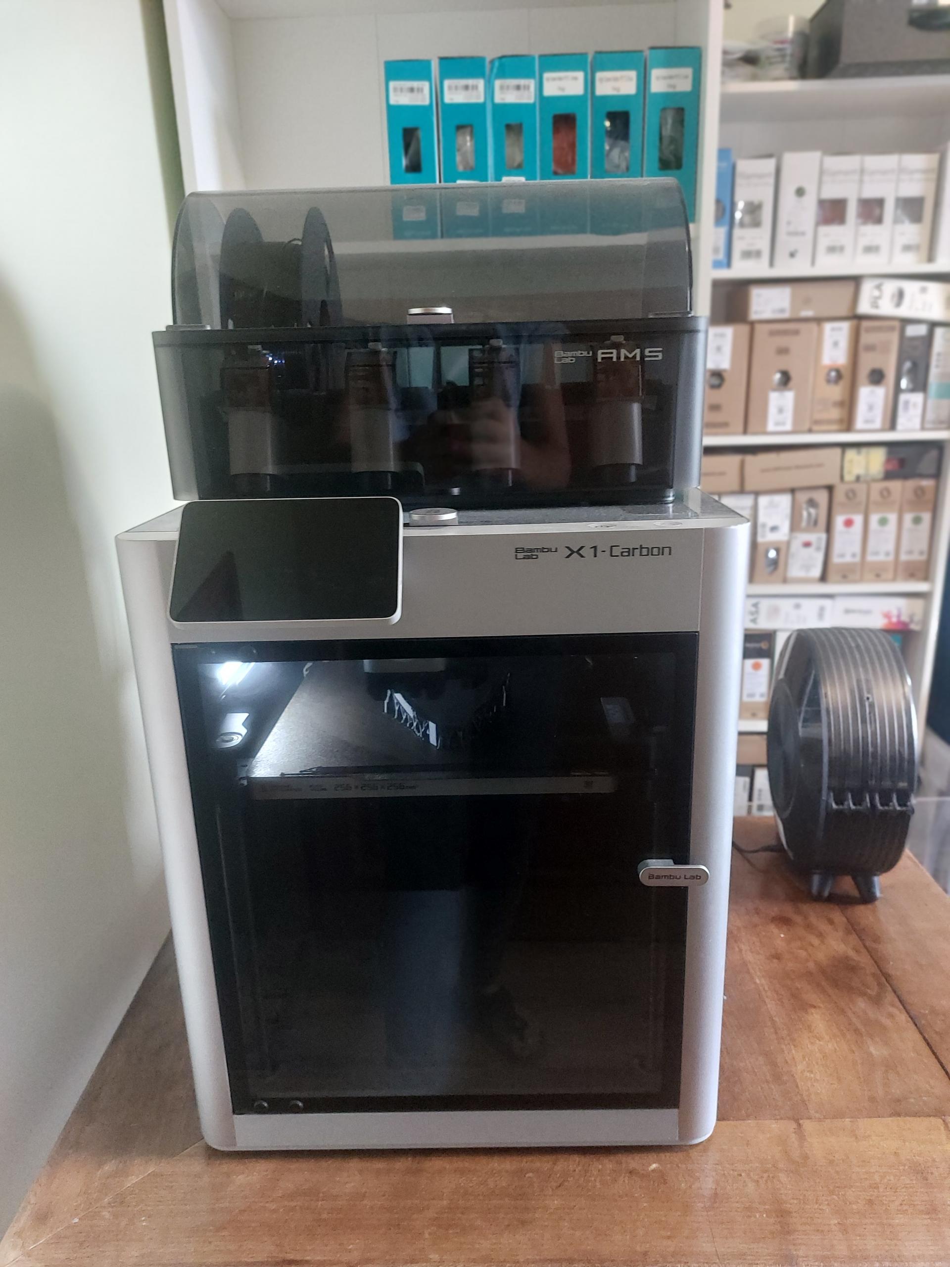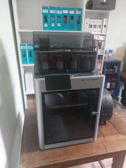 - BambuLab X1C, 4 anyag fogadására képes AMS-sel